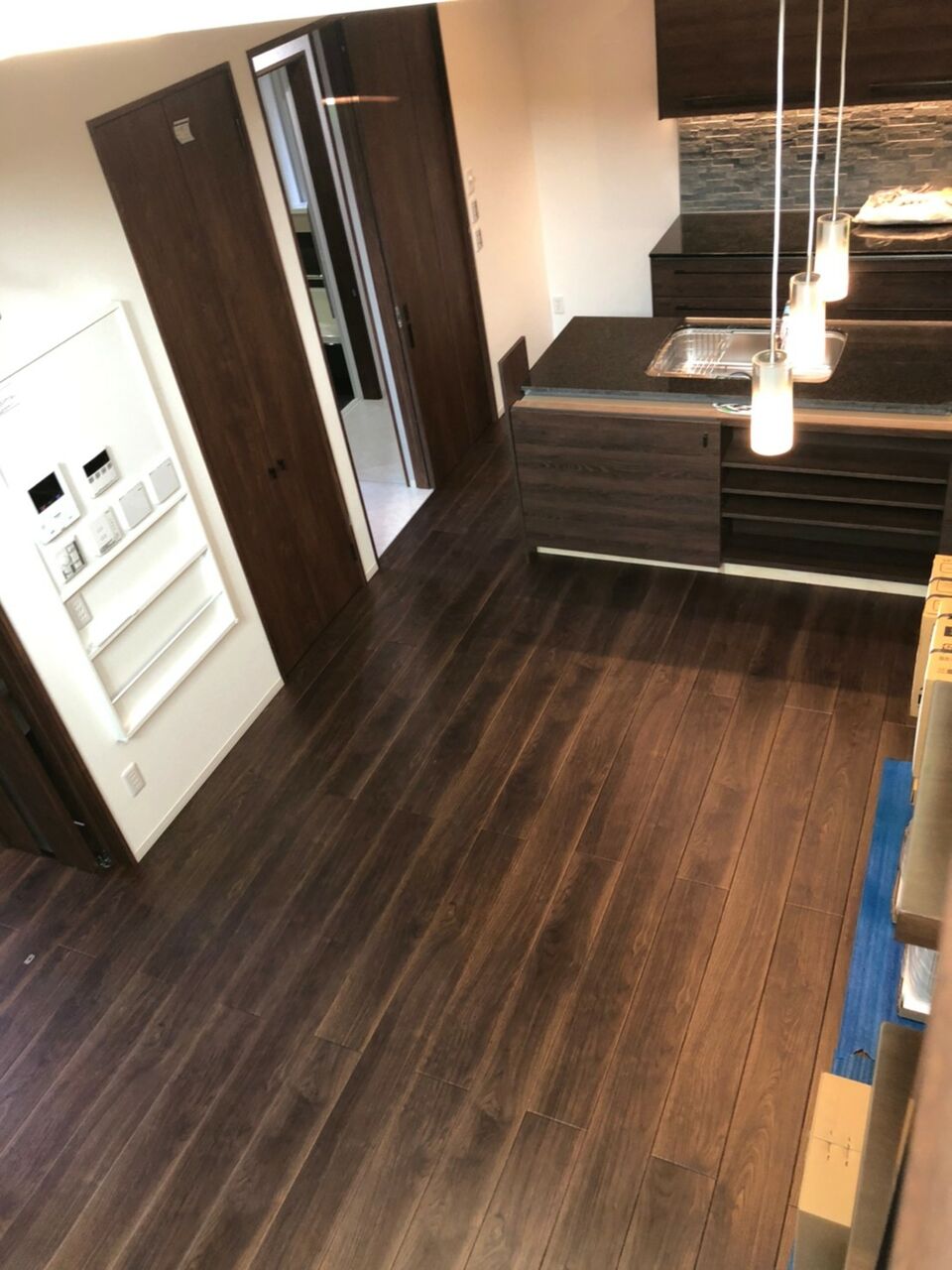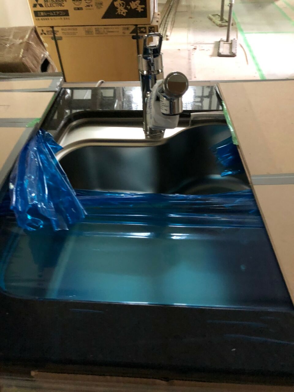 まだキッチンカウンターが届かず、グラビオエッジも付いていません。