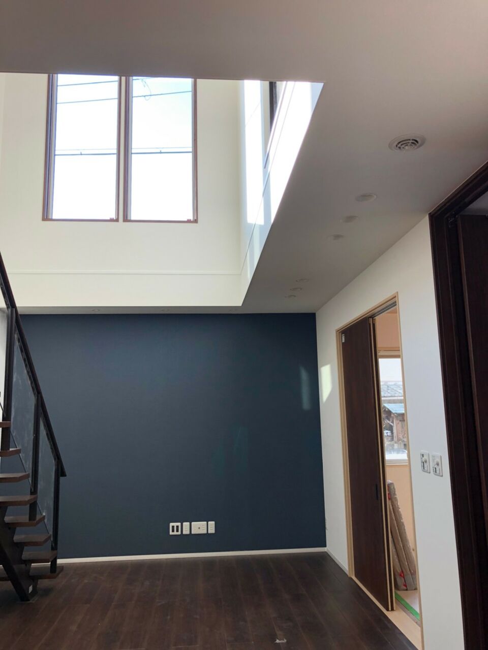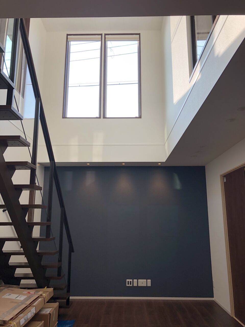 位置は良いですが、ネイビーに電球色はどうなんでしょうね。