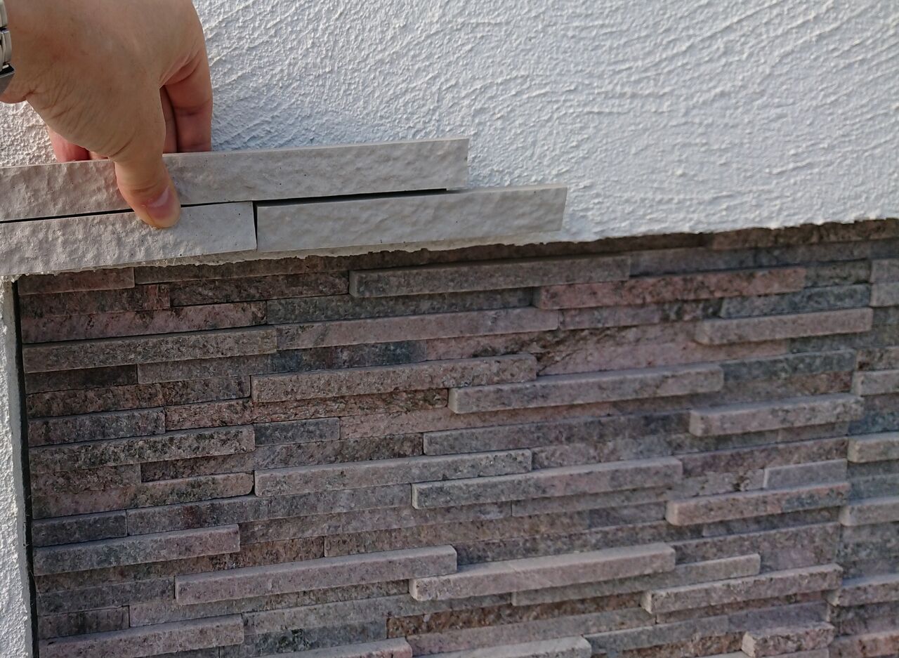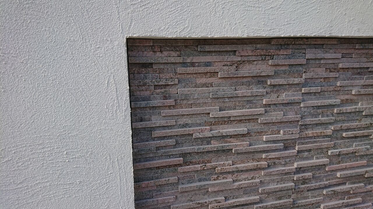 ①ベージュやブラウン、ブラックの天然石貼りはよく見かけるが